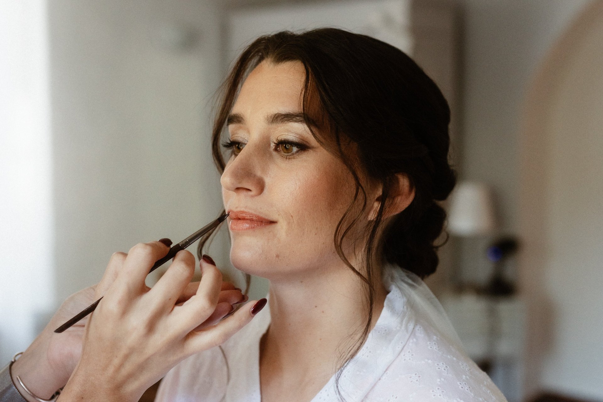 Nous travaillons main dans la main pour proposer une préparation complète de la mariée, alliant maquillage sur mesure et coiffure élégante.